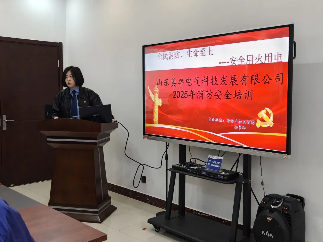 為進(jìn)一步強(qiáng)化全體員工的消防安全意識(shí),提升火災(zāi)應(yīng)急處置與自救互救能力,2025年11月7日,山東奧卓電氣科技發(fā)展有限公司特邀濰坊市社安消防的郝夢(mèng)琳教官開展消防安全知識(shí)培訓(xùn),公司各部門員工代表參與本次培訓(xùn)。